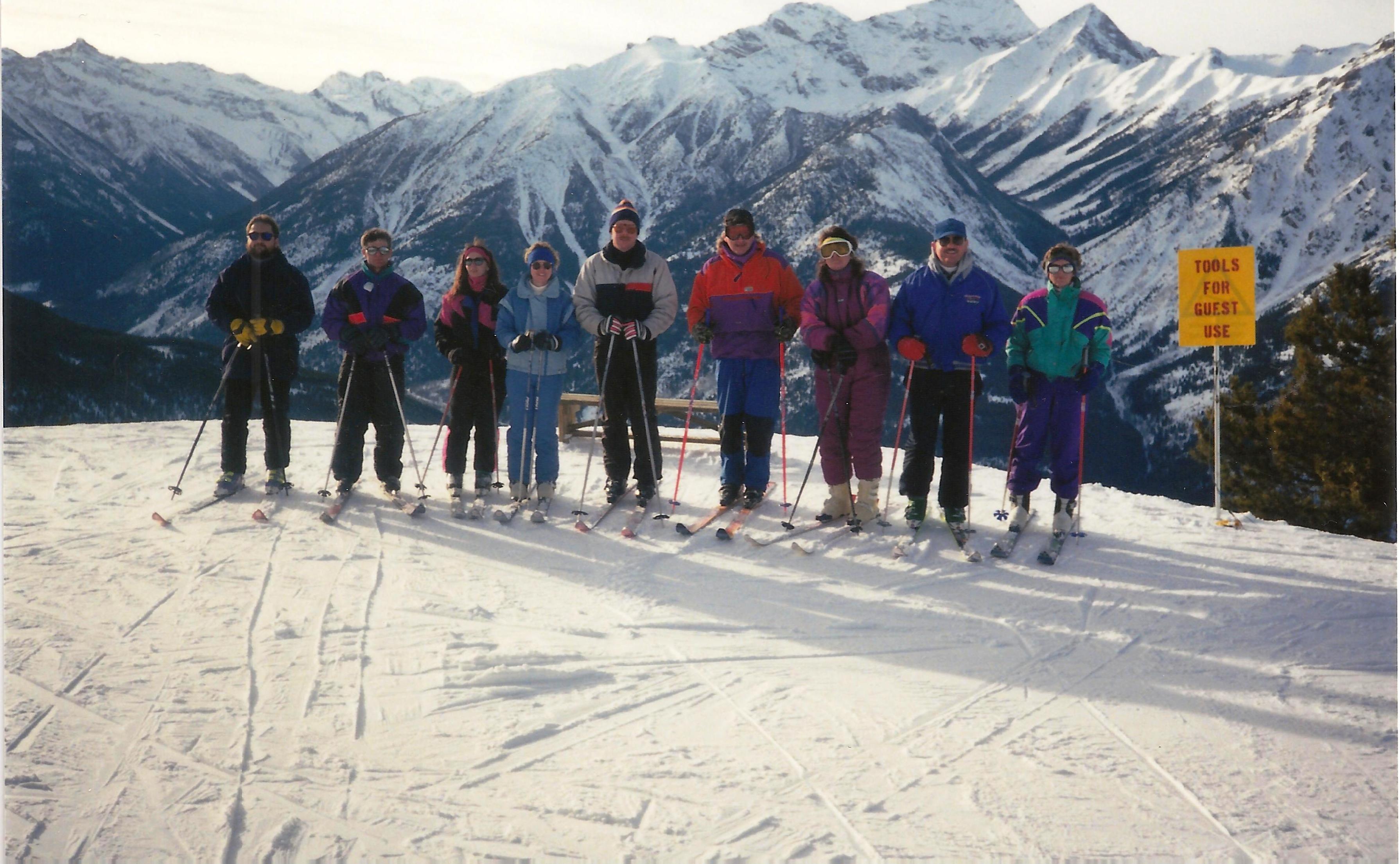 A ski trip to Mt. Panorama. The group on top of the mountain.