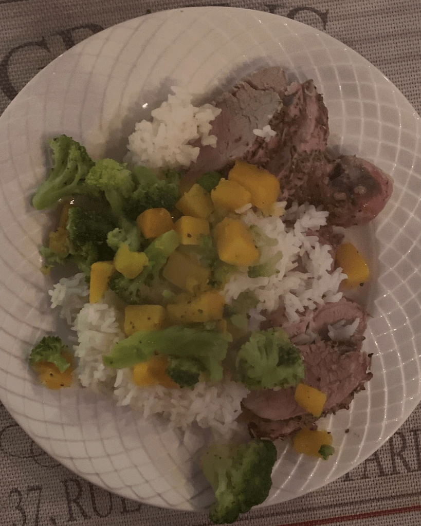 Like I said, it’s very simple. We would suggest upping the time to 30 to 35 minutes. That was the only issue we had. The clean-up was super easy as well. We used Jasmine rice for a base, mixed with frozen broccoli and butternut squash. The vegetables were cooked in a bit of olive oil and spiced with salt and pepper to taste.